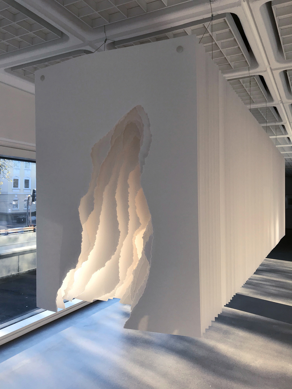 Paper 400g, torn, metal mounting and plastic, 100 x 140 x 500 cm,
