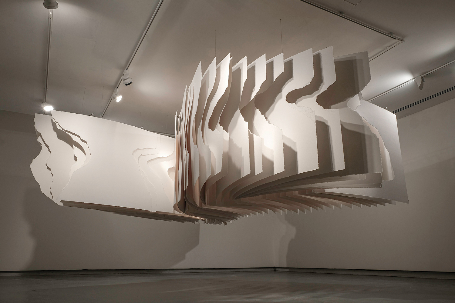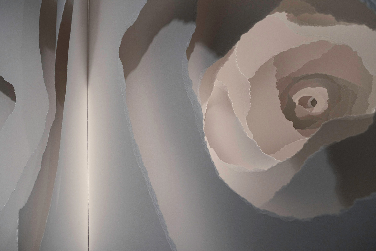 Site specific installation, paper 450g, torn, metal mounting, 127 x 460 x 480 cm,